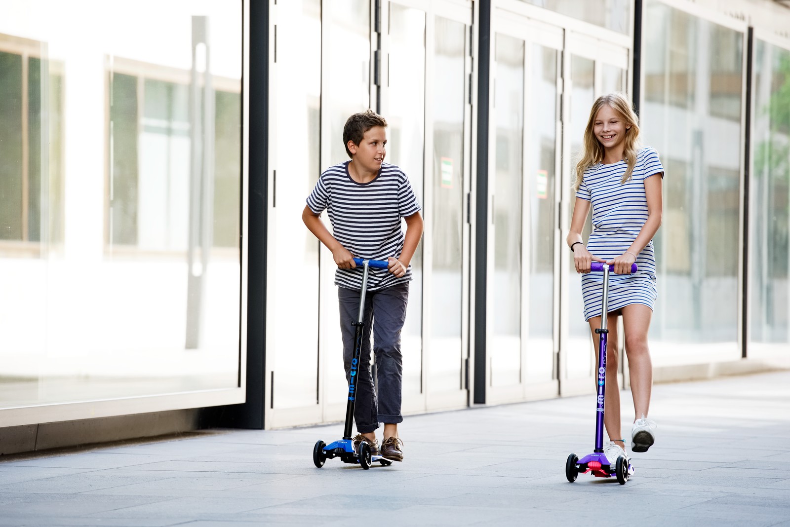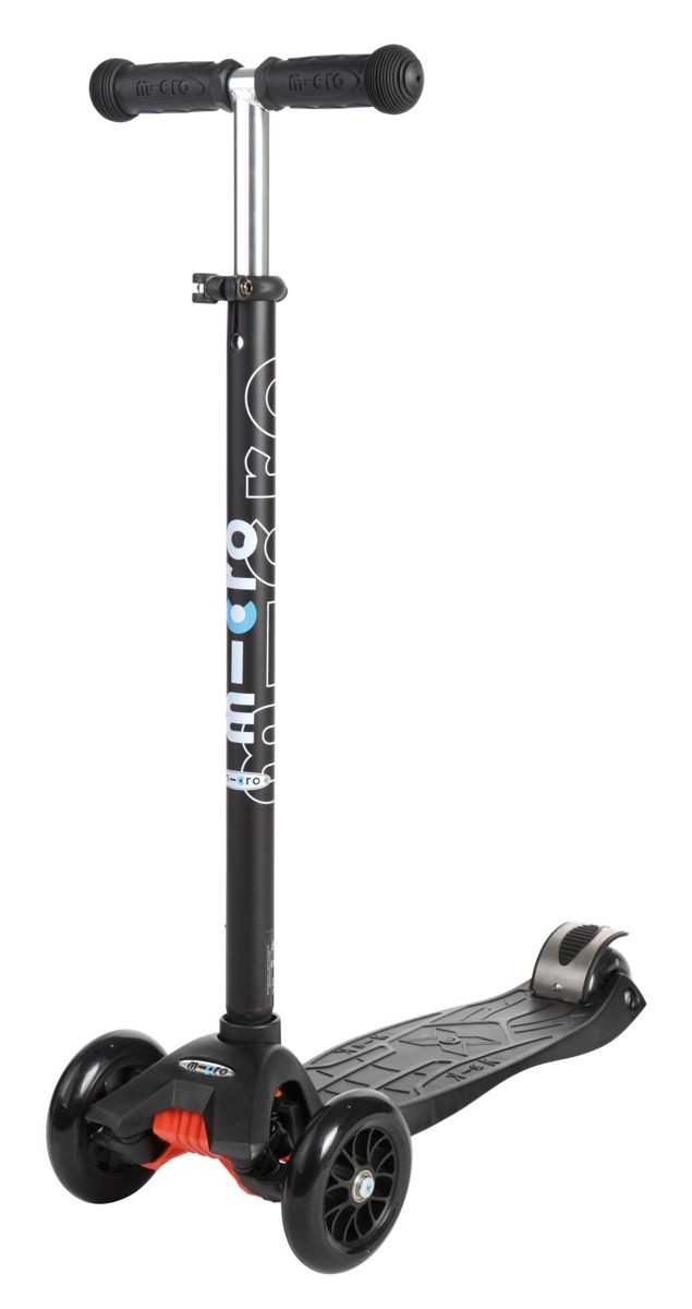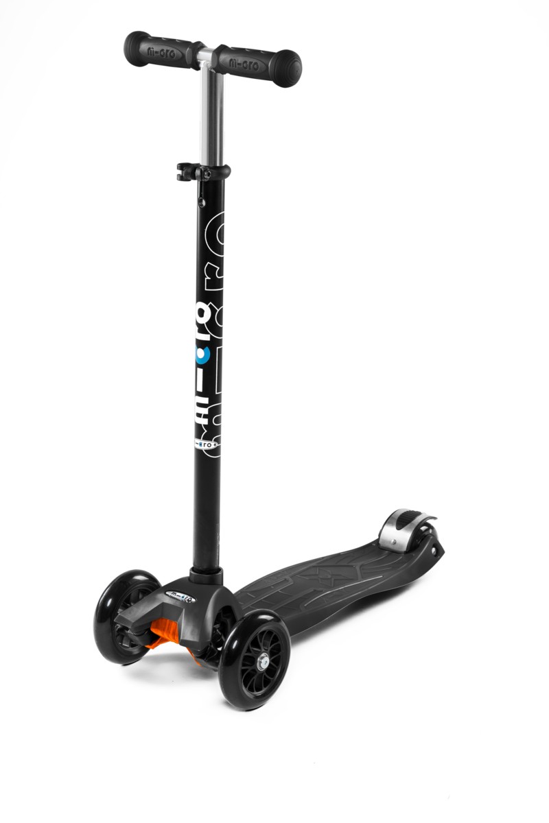 For children 5 to 12 years old Max Load: 50 kg Three wheels for superior stability Wheel size: 120/80mm Wheel Material: PU Tbar Height: 67cm - 91cm Tbar Removable and Adjustable Product Weight: 2,5 kg Available colours: Blue, Pink, Red, Green, Orange, Purple and Black Patented, Swiss designFor future kickboarders! Too big for the Mini Micro but still too small to switch to adult scooters or kickboards? Well then, welcome to the Maxi Micro! Just like the Mini Micro the Maxi Micro also provides a unique riding experience thanks to its patented weight transfer steering system. The Maxi Micro comes in various trendy colors.